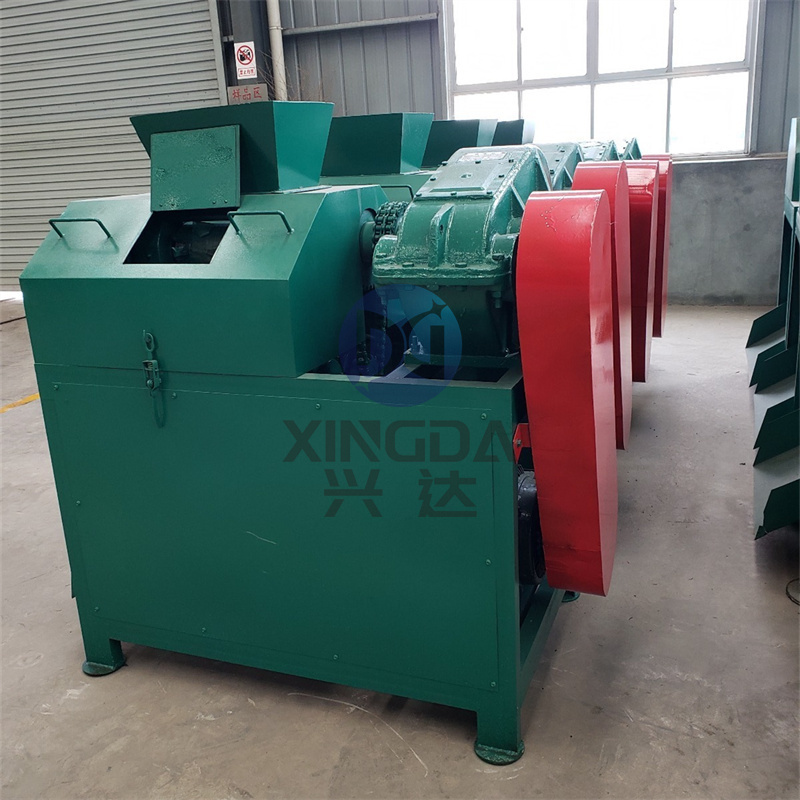 這款興達(dá)公司制作的對(duì)輥式造粒機(jī)采用物理擠壓原理,將粉劑物料加工為所需形狀顆粒,其工作原理是:由電動(dòng)機(jī)驅(qū)動(dòng)皮帶和 皮帶輪,通過減速機(jī)傳遞給主動(dòng)軸,并通過對(duì)開式齒輪與被動(dòng)軸同步,相向工作。物料從進(jìn)料斗加入,經(jīng)對(duì)輥擠壓成 型,脫模造球,然后落入破碎室,同時(shí)隨著傳動(dòng)軸驅(qū)動(dòng)的一副鏈條帶動(dòng)兩根狼牙棒的旋轉(zhuǎn),將擠壓成型但相互粘連的 顆粒分離,從下方篩孔篩下成品顆粒和粉料,經(jīng)過后續(xù)的篩分機(jī)實(shí)現(xiàn)顆粒物料和回料粉劑的分離,利用皮帶輸送 機(jī)使返回料與新料混合,再次進(jìn)行造粒。隨著電動(dòng)機(jī)連續(xù)轉(zhuǎn)動(dòng),物料的不斷進(jìn)入,實(shí)現(xiàn)了批量生產(chǎn)。