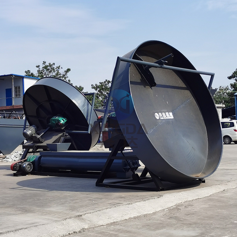 興達公司圓盤造粒機通過圓盤不斷地旋轉制造顆粒。其中小型系列由主電動機驅動減速機然后直接帶動圓盤旋轉,而較大型號系列則由主電動機驅動皮帶輪和皮帶,通過減速機傳動小齒輪,小齒輪與固定在盤底的大齒輪相互嚙合,相向工作。大齒輪則通過特殊合理的設計,安裝在固定于機架調節盤上的主軸上,以支撐整個造粒盤的