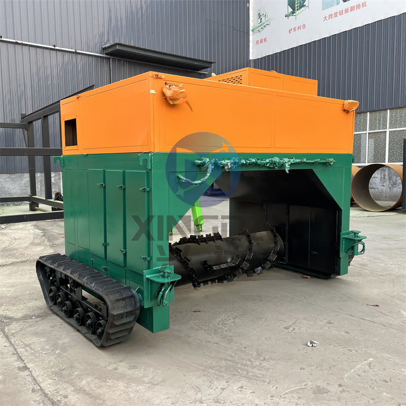 有機肥生產線中的發酵設備履帶翻堆機屬于地面堆放發酵設備,是目前較節省土建、人力資源的一種制肥模式。需將物料堆成長形條垛由翻堆機定時對物料實施攪拌、破碎,在好氧條件下進行有機物的分解。兼有破碎的功能,大大節省了時間和勞力,使有機肥廠生產效率和產品質量有顯著提高,成本大大降低。不僅比深槽發酵速度快