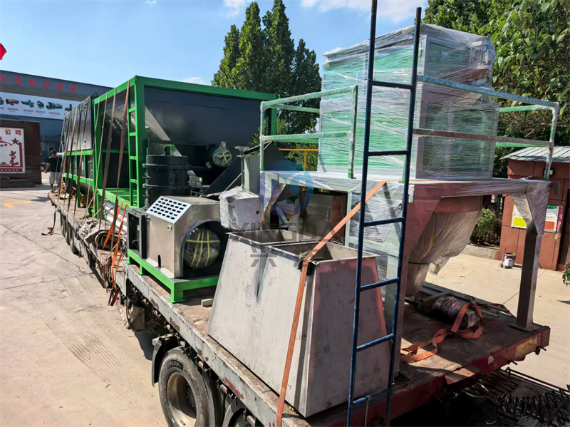 第一車顆粒有機肥生產線完成裝車后準備發往甘肅地區:有機肥生產線在粉狀有機肥生產線的基礎上增加了造粒、烘干、冷卻、顆粒篩分、返料粉碎、成品包裝等設備。這種生產線能夠生產出球狀顆粒有機肥,有機物含量可達100%,無需添加粘結劑,顆粒堅實,干燥能耗低。