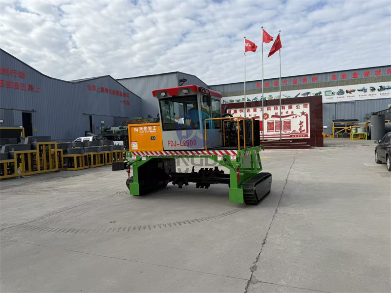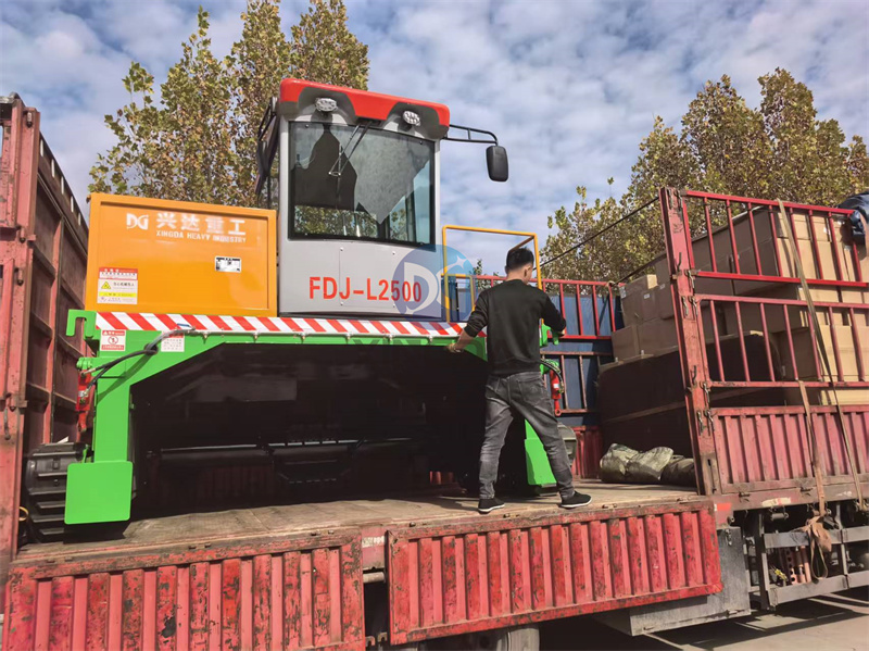 一臺2500式有機肥履帶翻拋機正在裝車:履帶翻堆機通常由動力系統、傳動裝置、翻拋機構和控制系統組成。動力系統一般采用柴油發動機或電動機,提供足夠的動力以驅動履帶和翻拋機構工作。傳動裝置則負責將動力傳遞到各個工作部件,確保設備運行平穩可靠。翻拋機構是核心部分,通過旋轉的刀片或耙齒將有機物料翻動,使其充分接觸空氣,加速發酵過程。控制系統則可以根據操作需求調整設備的工作參數,如翻拋速度和深度等。
