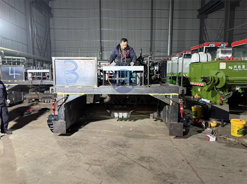 興達車間正在對多臺有機肥履帶翻堆機進行加工制作:履帶翻堆機是一種農業機械設備,主要用于大規模農場和牧場的堆肥處理。它通過其獨特的履帶設計,能夠在各種地形上穩定移動,包括泥濘、不平或濕滑的地面。這種設備通常配備有強大的旋轉刀片系統,能夠有效地將有機廢物、秸稈、糞便等物料進行翻動和混合,促進空氣流通,加速分解過程。