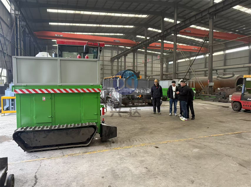正在裝車的3米履帶翻拋機準備出發前往鞍山:興達重工科技公司是專注于生產有機肥設備的廠家,種類多,型號全。履帶翻堆機屬于地面堆放發酵設備,是目前較節省土建、人力資源的一種制肥模式。需將物料堆成長形條垛由翻堆機定時對物料實施攪拌、破碎,在好氧條件下進行有機物的分解。兼有破碎的功能,大大節省了時間和勞力,使有機肥廠生產效率和產品質量有顯著提高,成本大大降低。不僅比深槽發酵速度快的多,還有效防止了發酵過程中硫化氫、胺氣、吲哚等有害、惡臭氣體的產生,符合環保要求。