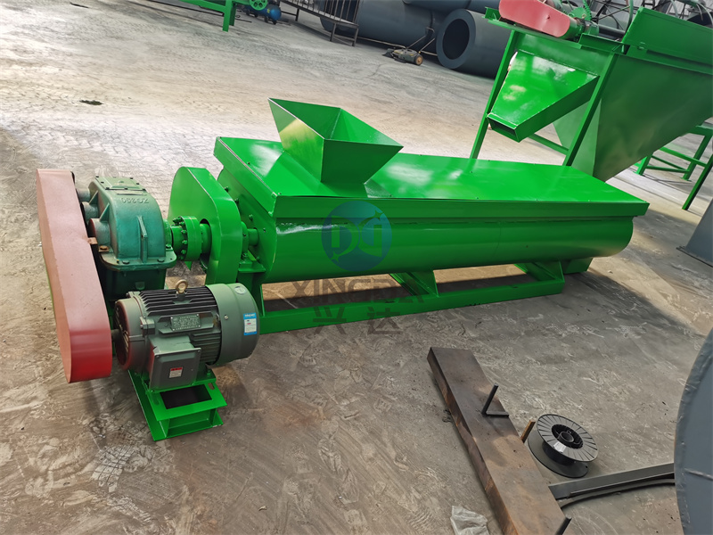 雙軸攪拌機是興達機械制作的整套有機肥生產線中的一款有機肥攪拌設備。在有機肥生產線中擔當起到攪拌物料的作用。 為懷化客戶制作的雙軸攪拌機的攪拌原理:利用兩根呈對稱狀的螺旋軸的同步旋轉,雙軸攪拌機內裝有旋轉反向的漿葉,漿葉成一定角度將物料沿軸向、徑向循環(huán)翻攪,使物料迅速混合均勻。由電機通過皮帶