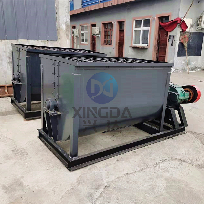 臥式攪拌機是整套有機肥生產線中的一款有機肥攪拌設備。在有機肥生產線中擔當起到攪拌物料的作用。臥式筒體內裝有旋轉反向的漿葉,漿葉成一定角度 將物料沿軸向、徑向循環翻攪,使物料迅速混合均勻。 臥式混合機由電機通過皮帶傳動到減速機帶動軸旋轉。 興達機械為信陽客戶制作的臥式攪拌機的攪拌原理:激烈