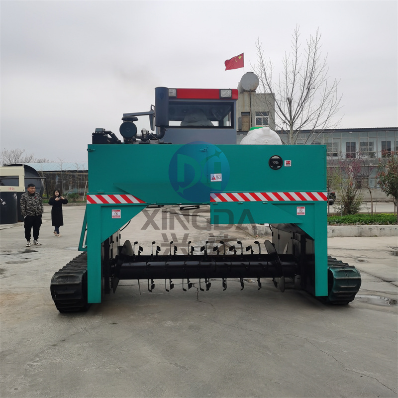 有機肥生產線設備履帶翻堆機屬于地面堆放發酵設備,是目前較節省土建、人力資源的一種制肥模式。需將物料堆成長形條垛由翻堆機定時對物料實施攪拌、破碎,在好氧條件下進行有機物的分解。兼有破碎的功能,大大節省了時間和勞力,使有機肥廠生產效率和產品質量有顯著提高,成本大大降低。不僅比深槽發酵速度快的多,還